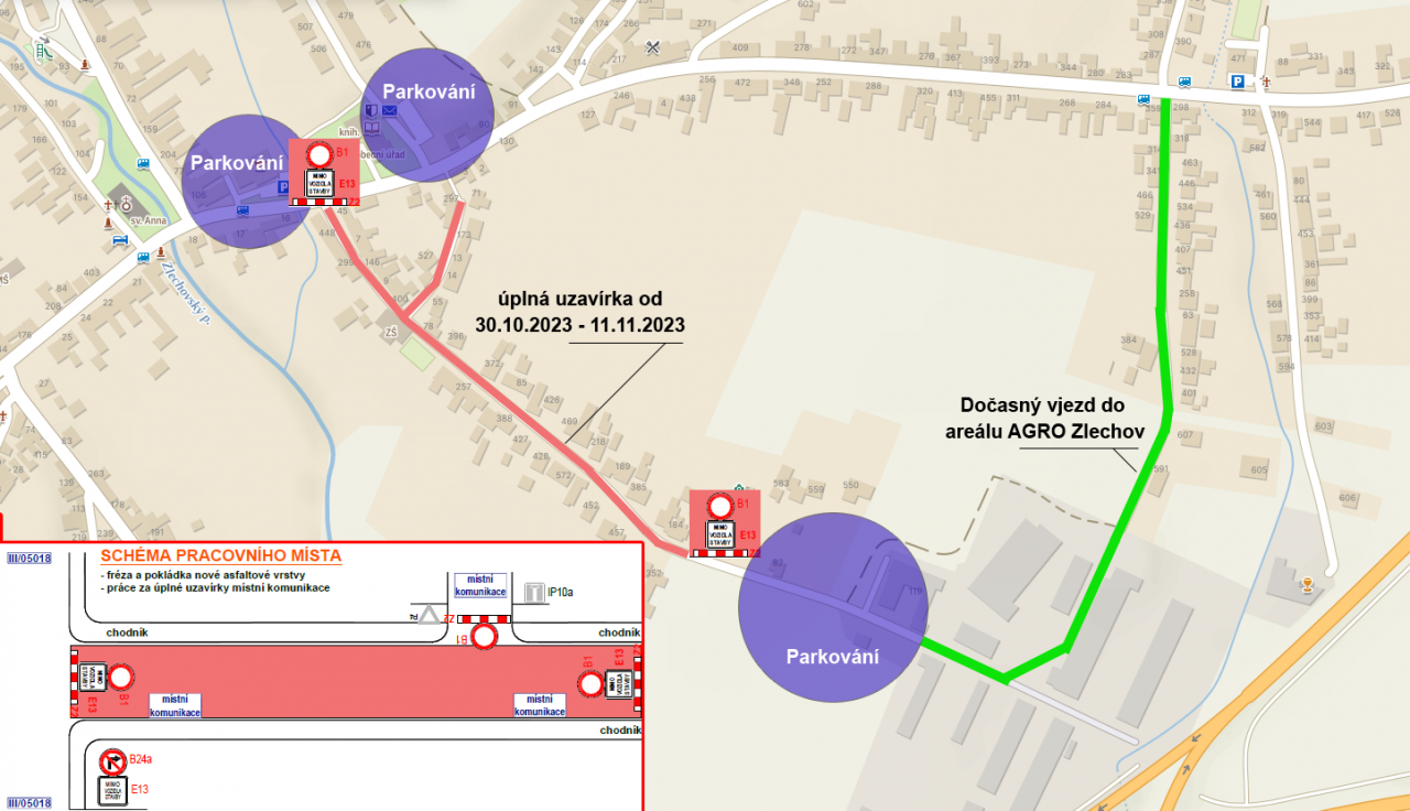 Vjezd do areálu AGRO Zlechov a po Zahradnictví Míč bude umožněn druhou bránou z části obce Olší.