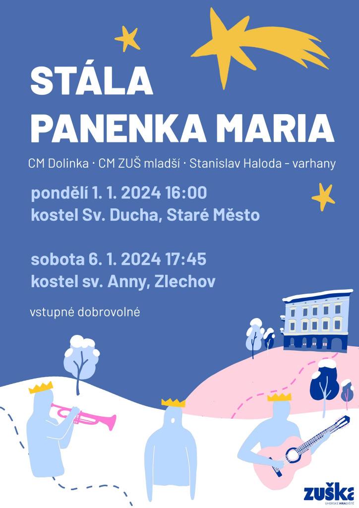 Římskokatolická farnost Zlechov Vás srdečně zve na 3K koncert "Stála Panenka Maria", který se uskuteční v sobotu 6. 1. 2024 v 17:45 hodin /po mši svaté/ v kostele sv. Anny ve Zlechově.