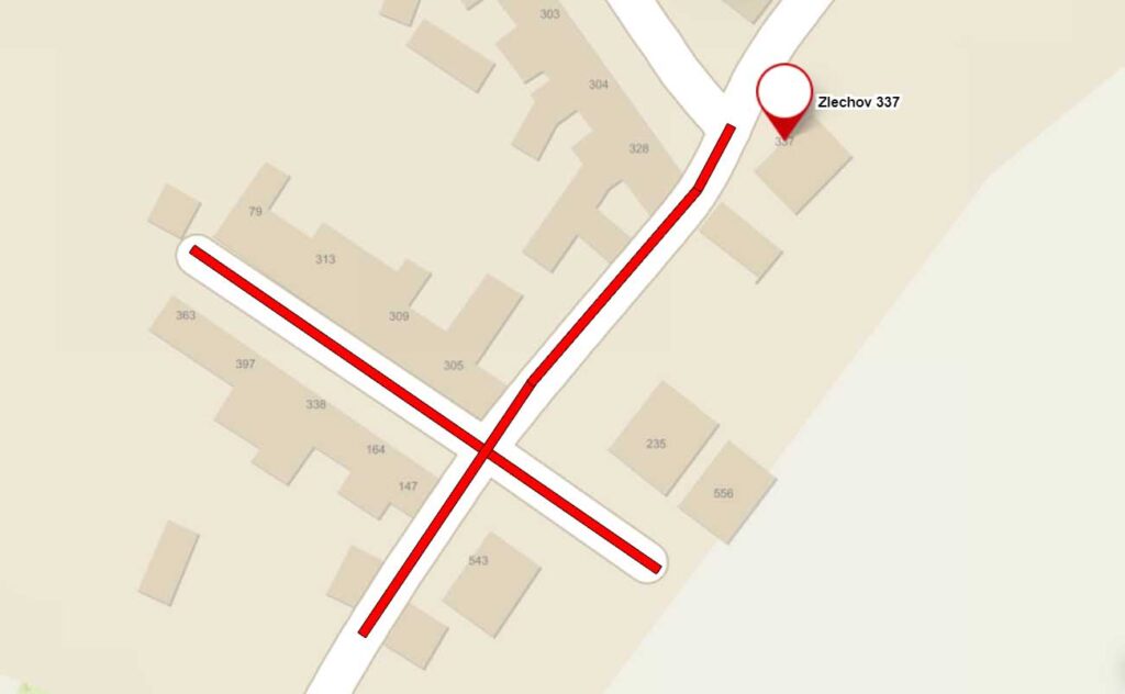 Upozornění na omezení při rekonstrukci kanalizace pro RD č.p. 363, 397, 338,164,147,79,313,309,305,543,235,556, 337