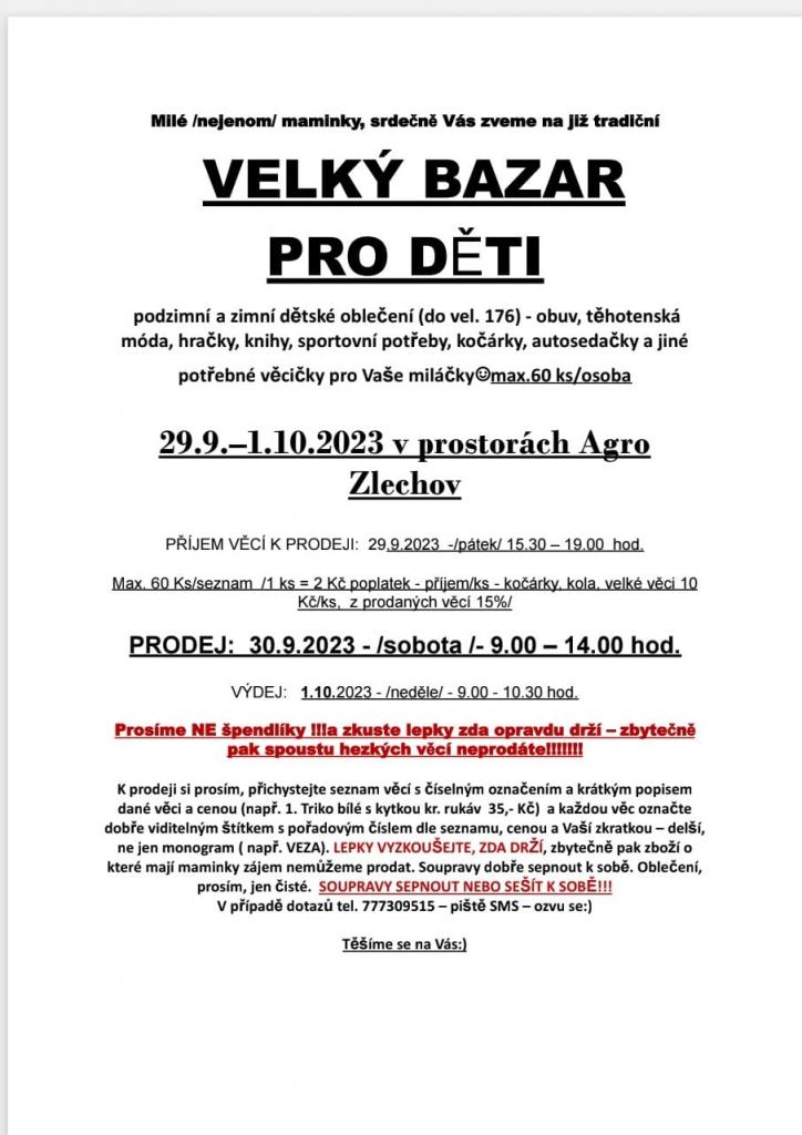 Obec Zlechov se rozprostírá podél Zlechovského potoka v nadmořské výšce 208 m a se sousední obcí Tupesy tvoří konurbaci. Zlechovský katastr má rozlohu 649 hektarů a v současnosti v něm žije 1697 obyvatel. V katastru obce se nachází jedno z nejstarších slovanských sídlišť u nás. Našly se zde nálezy z paleolitu a neolitu. Výhodná poloha obce umožňuje výlety za poznáním po okolí.