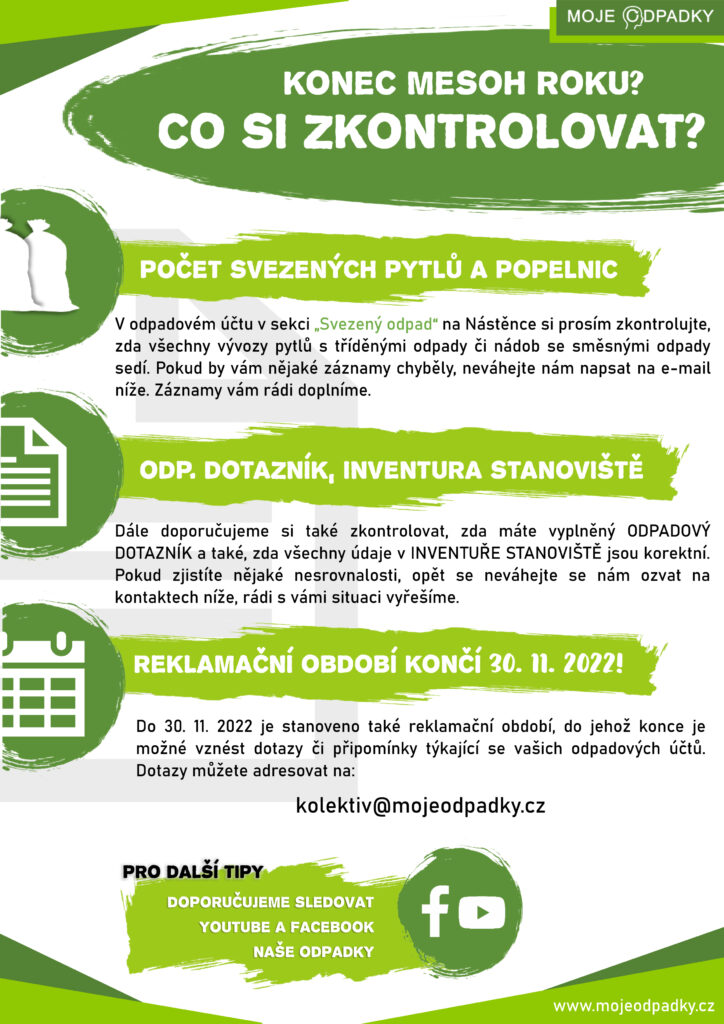 V případě nestrovnalostí se obraťte na email kolektiv@mojeodpadky.cz