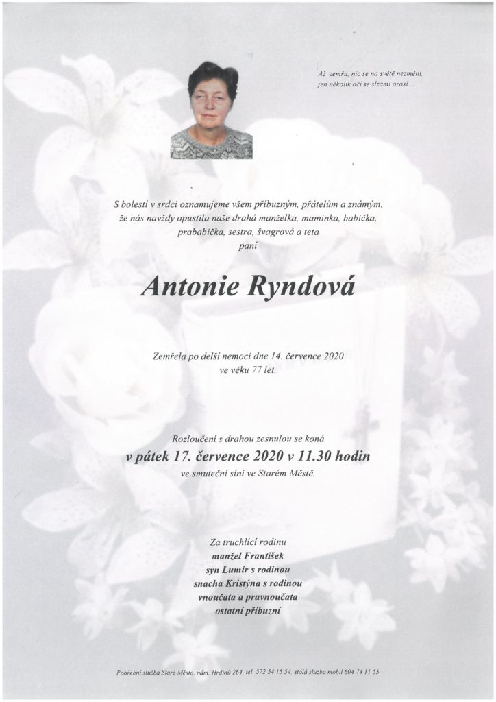 paní Antonie Ryndová, 77 let